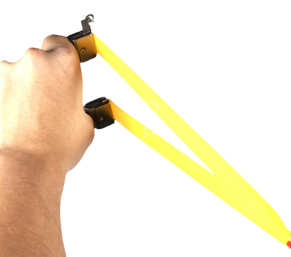 Fionda in metallo ergonomica e tascabile completa di pratica e comoda impugnatura rivestita in cordura e completa di tacche di mira con fibra ottica.